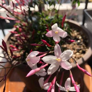 おはようございます (*^^*) ピンク色の方もいきなり花となりました。 調べると充分な冷気に当てずに暖かいところへ置くと こうなるそうです(≧∀≦) 昨日作業 お迎えしたハゴロモジャスミンを鉢に移しました。 ビオラ”ラブラドリカ”の場所はお迷い中。