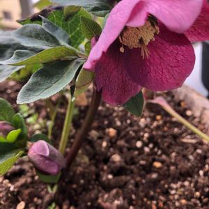 クリスマスローズにツボミが✨✨ 三つ葉みたいなちっちゃい葉っぱは多分実生です🌱
