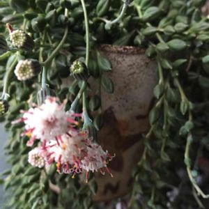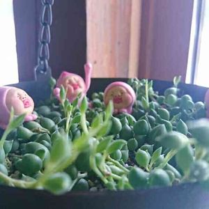 今日は寒い一日です。 ピーチネックレスも寒くなり、編み編みに入れて部屋の中へ😁 以前のpicでグリーンネックレスと称してましたが、娘にピーチネックレスじゃあないの?と指摘されました❗ 多肉は🔰似てる種類が沢山ありますね☺🍀