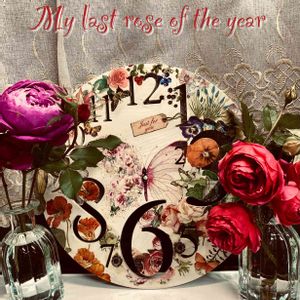 さてさて🌹今年最後の薔薇です 寒くてなかなか蕾が開かないボレロと よく咲くフィネスとポンポネッラ 時の経つのは本当に早いものだなぁと 考えていたら思いだした私のDIY👍 壊れた時計の文字盤にペーパーナプキンで デコパージュ💕以前に作ったものですが 改めて飾りました キッチンの出窓がパッと明るくなりました 来年も明るく過ごせる一年でありますように (❁ᴗ͈ˬᴗ͈)⁾⁾⁾オネガイシマス♬