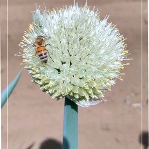 今日のお花 𖡼𖥧𖡼𖤣ネギ𖤣𖡼𖥧𖡼 別名 ヒトモジグサ (一文字草)(人文字草) ヒガンバナ科 ネギ属 ネギ坊主に🐝さんが… お花には蜜源が 有るのかしら…????