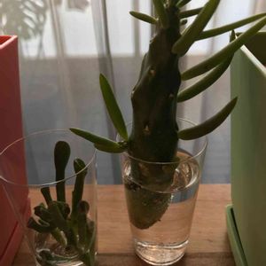 ⬅️左のは ゴーラムの分かれちゃったやつです ➡️右のは 根っこが全て取れちゃった将軍です 水差しで根が出てこないか やってます 土に植えるべきでしょうか? どなたか教えてください
