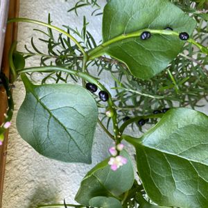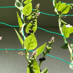 今夏のグリーンカーテン、ツルムラサキのお花と結実のお姿●🤔 一つ一つは地味ですが、数が多いので壮観です。 肥料が足りなかったのか、あまり繁りませんでしたが、水切れに強く涼しげで、グリーンカーテンとしてはよかったです😊