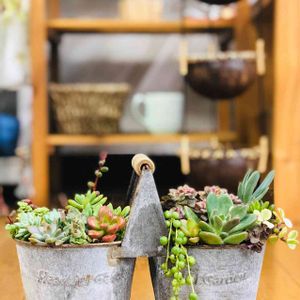 最初に右側のロッティさんを主役に寄せ植えを始めて、次に手前のセダムをプランターからボサっと持ってきて入れたけど(^◇^;)ちょっと多すぎたかしら… これが終わった後、古い寄せ植えの鉢の数を減らすべく、あっちへ移したりこっちへ葉挿ししたり徒長したのをチョンパ✂️して立てたり💦結局3鉢位は減ったのかなぁ?植え替えを繰り返していくうちに、似た様なのは名前が分かんなくなっちゃうね(´・ᴗ・` )まいっか…