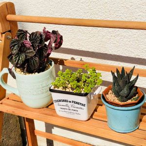 この真ん中のポットカワイイなあ💕何か植えたいなあと思って植えました😊🎶 今日他の元気のなかった多肉さんも植え替えたのですが、元気が無いのは根がポットにイッパイに伸びきって狭くなってるのが原因という事もよくあるんですね🔰の私は日々発見Σ(-᷅_-᷄๑)学んでいます。