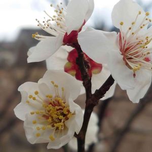 畑の実梅の花 去年は多く収穫出来たので今年の梅の実は少なそうです~💦 花の咲いてる枝数が少ないです~😭🐰
