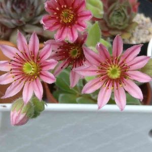 ダイソーからお迎えして2年目のセンペルちゃんにかわいいお花が咲きました🌼 元々一株なのでお花が終わったらさようならです👋 あと2個の蕾が咲いたら終わりですが、こんなにかわいいお花をたくさん咲かせてくれてとってもいい子でした👦👧 センペルちゃん、ありがとう゚+(人・∀・*)+。♪