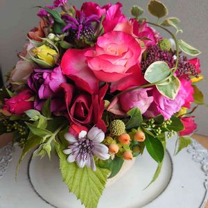畑のお花たち💐 友達にプレゼント🎁するために畑のお花たちを摘んできました✨ いつものことながら今回もぎゅうぎゅう詰め😅 薔薇は少なくなりましたが、宿根草のお花がぼちぼち咲き揃って来ています💞🐰☺️