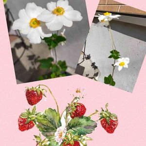 シュウメイギクのお花が、3つ咲きました♡可愛い♡♡♡ (*˘︶˘*).。.:*♡ 白いお花で🍓のお花にもちょっと似てるよね… って事で、🏷毎月15日はいちごの日🍓に参加します!