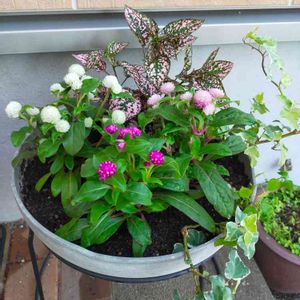 千日紅3色とヒポエステス、ヘデラの寄植えをしました。 千日紅可愛くて大好きで毎年買ってます❤(ӦvӦ。)