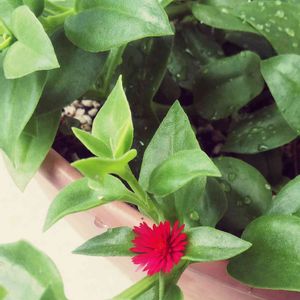 今回赤色の花。 前回はピンク色。 同じ苗なのに 違う色咲くんだぁ😲 赤色も良き!