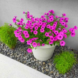 サフィニアは連日の雨で大分散ったんですけど、前回投稿した時よりも花盛りです💕 その両隣は、メルカリで抜き苗で買ったコキアです。こんな石だらけの所でも、元気にモフってきました(≧∇≦)b 秋にビンクに紅葉するのを楽しみにしてます❤(ӦvӦ。)