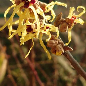 畑のマンサクの花が咲きました🎶🎶 小さな蕾が咲くとこの様なヒラヒラの紐状の花弁が出現れます…😍💕🌸 スローモーションで、花が咲く瞬間を見てみたいです〜😄💫🐰