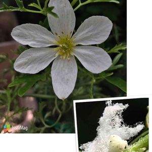 今シーズン最後であろう 我が家のクレマチス 今年 沢山咲いてくれました。 そして クレマチスの茎に白いフワフワとしたのが付いてる???と思い取ろうとしたら動くでは有りませんか😱😱 picをパチリ📸してみたら目がある事に気づき調べてみたら「アオバハゴロモ」という昆虫‼️植物の汁を吸うらしいです。 とりあえず1匹だけだったのでそのままにしておきました。 白いドレス着た幼虫でした。