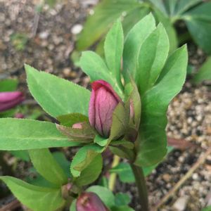 お隣さんの クリスマスローズ もうすぐ咲きそう