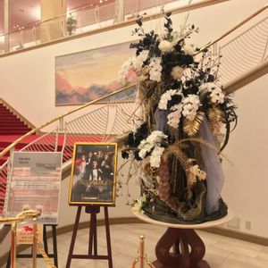 毎年家族忘年会する カニ道楽🦀さん 今年は新年会で 元旦も家族全員揃ったけど やはり蟹は外せません。 玄関ホールに飾られているお花です。