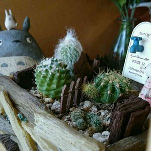 サボテンの日 GSを見て知りました(^^; 多肉にハマる前からサボテンはたまに買っていたんですが、よく枯らしてました(*_*) 多分雑貨屋とかのオシャレなガラスの入れ物(底穴なし)に寄せ植えしてある様なの買ってたから。 今思えば、根腐れ系で枯らしてたんだなぁ。 今は寄せ植えから救出したチビッ子と100均サボぐらい。 随分昔に買ったトトロのリアカー鉢にちんまりしてます。 金鯱、子供出来てます。しかしトゲ危険w 久々にお水好きも上げてみましたw