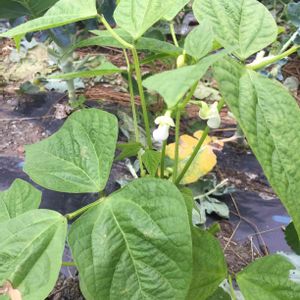 おはようございます😃 種を蒔いたツル無しインゲン豆の、花が咲きました。今年も沢山の収穫を期待しています。