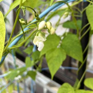 学校から持ち帰り、全く世話をしなかった娘のプランターを片付けようと思ったら… おや? インゲン豆の花が咲いていました🤍 もうしばらくこのままにしておこう😉