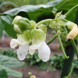 20200629 インゲン豆に花が付き始めました、 種をまくのが遅かったのでやっとです。
