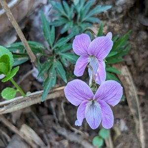 この子はスワスミレでしょうか🤔🎶 という疑問と興味から皆さんにお尋ねしていましたが、やっと納得のいく答えが出せました👌💕🎶 かしさんにご協力いただいて、葉っぱの判定を再度していただきました🙇♀️ そしてその結果、この子はエイザンスミレという結論に達しました🥰💕🎶 ヒトツバエゾスミレは単葉で、それが不規則に裂けているのですが、 エイザンスミレは、 葉のつけ根まで大きく3つに裂け、ふつう、それぞれに深い切れ込みがあります。 エイザンスミレの葉は、暖かくなってくると切れ込みが浅くなるものがあるそうです☘️ 今回はこのパターンだった様です🤔🎶 ヒトツバエゾスミレは単葉で不規則に裂けるので、そこが紛らわしいところでした😰 💠💠💠💠💠 以下、このスミレの迷いみちの経過をそのまま残しておきます🙇♀️ スワスミレはエイザンスミレとヒカゲスミレの自然交雑種。 山地の半日陰の湿った場所などに生える多年草で、高さは5~10センチ。 葉は卵状披針形~披針形で、縁は浅裂や中裂の不規則な鋸歯になる。 葉の両面には毛が多い。 花は直径2センチほどで、花弁は淡紅紫色~紅紫色。 白色に近いものや紅色の強いものもある。 側花弁は有毛。 花期は3月下旬~5月上旬。 本州に分布する。 この子は側弁基部に毛はありますが、 毛深い感じでは無い様ですが、 葉っぱの形状が気になります🥹✨💓🎶 エイザンスミレだと思っていたので、写真はこれだけです😅💦 🌿🌿🌿🌿🌿🌿🌿🌿🌿 かしさんのアドバイスをいただきました🙇♀️ ヒトツバエゾスミレかも⁇🤔 エイザンスミレの変種で 本州(関東北部、長野県)、四国で見つかっている。 生育場所はエイザンスミレと同様に崩壊地や落葉樹林下。 葉は変化が多く、2-3に中裂~浅裂するものや、縁が細かく切れるものなどいろいろ、同一個体でも変化するそうです。 スワスミレに似るが、植物全体が無毛か毛があっても少ないそうなので、 ヒトツバエゾスミレの可能性が大きいかもしれません🤔🎶 因みに"エゾスミレ"の名はエイザンスミレの別名。 分布域が多少違うのですが、エイザンスミレの変種という事であれば、高尾山に現れる可能性もありですね🥰💕🎶