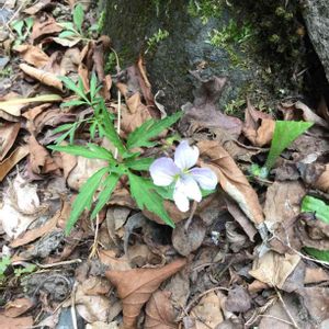実家の庭で今年初めて発見! 普通のスミレとは葉の形が違います🌿