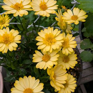 こんにちわ☺️ このオステオスペルマムも賑やかになってきました。エイザンスミレもたくさん咲き出しました。3枚目パンジー(ゆみラッフル)も元気、種が採れるといいな。