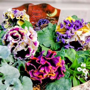 パンジーの寄せ植えもりもりふんわり✨可愛い色合いになりました。