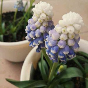 先日お迎えした ムスカリ マウンテンレディです。 うちには葉っぱがニラみたいになる普通のムスカリがいますが、変わった子もお迎えしてみたくて😊 名前通り雪を抱いた山みたい。レディっぽいかはわかりませんが😅 商品説明の写真は葉っぱだけだったのに 届いてみたら開花株だったのが意外でした👀 これから大きくなる蕾もあるので楽しみ💕 こちらは鉢おひとりさま植えにしました。