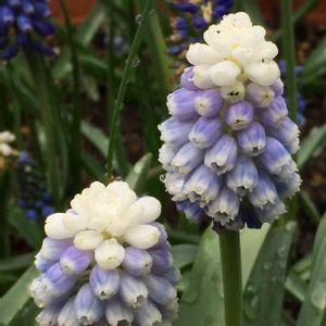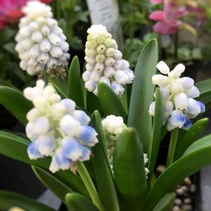 ムスカリ マウンテンレディ。 白とブルーの二色です。雪帽子って書いてありました。これも可愛い。