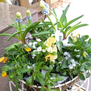 春本番を感じるお天気☀️でした 庭仕事日和♡ pic①②2月に作った寄せ植え ムスカリ咲いてきたら あれれアズレウム pic③あれれアズレウム 同じだったねぇー笑 マウンテンレディーは新入りさん pic④パンジーもモリモリに✨