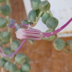 ①②ポット型の容器に植えた エンジェルティアーズ👼 猛暑で根元がカリカリ😅 仕立て直さないとね💦 奥にはグリーンネックレスも❣️ 🏷ネックレスの日 🏷流水ネックレス ③【閲覧注意🖐️】 ネックレス系の茎がペタペタする とは知っていましたが、 下にあるクラッスラから茎を伝って 登ろうとしたアリがみんな Gホイホイ🐜🐜🐜よろしく 捕まってました😆💦 虫がお嫌いな方はごめんなさい😅