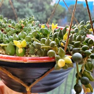 エンジェルティアーズという子を買ってきました 斑入りらしいけど、そんなに斑は入ってない気がする笑 初めてのネックレス系、上手く育てられるかな〜 ここから溢れさせたい
