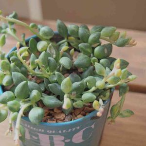 先日お連れした オリビアさんを さっそく植え替え♡( ᵕ̤ૢᴗᵕ̤ૢ )♡ ピーチネックレスに見えるけど 一応 斑入のエンジェルティアーズ👼 下の方だけしか 斑がわからない😅💦 くるくる巻いて 増やす作戦ᕦ(ò_óˇ)ᕤ✨ *オリビア *エンジェルティアーズ