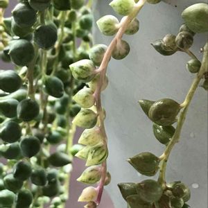 セネシオ エンジェルティアーズ(斑入りピーチネックレス)今の所、元気! 夏は部屋に避難かな〜。