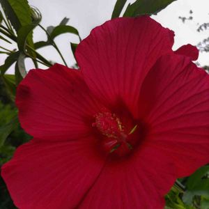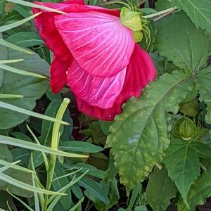赤色のアメリカフヨウ。 正面顔が観られませんでしたが 大きな花弁ですよね‼️ 2022年8月18日撮影