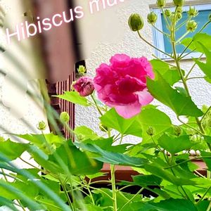 アパート敷地内 玄関前の酔芙蓉が咲きました🤗 昨年と比べて、一ヶ月以上も遅く咲きましたね…… 2022年9月16日撮影