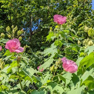 アメリカフヨウ 歩道沿いの花壇にて見られます。 2022年8月6日撮影②