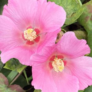 おはようございます♪ フヨウ(芙蓉)の花二輪 とてもきれいでした。 一つの花は三日咲き、次々咲くのでずっと咲いているように見えます。