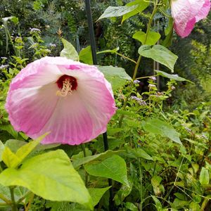 荒地に芙蓉の花🌸 葛に巻き付かれても元気です😊