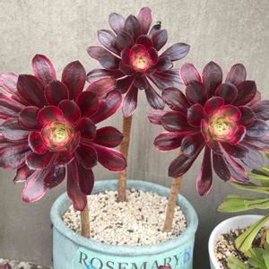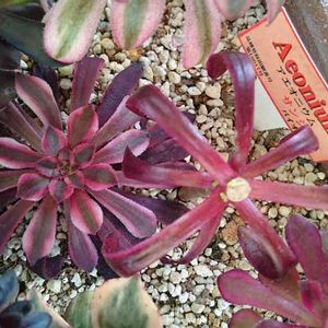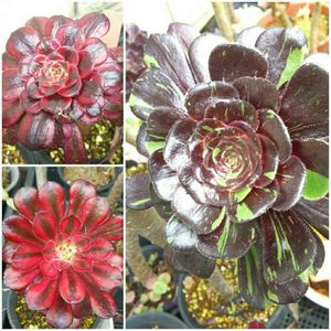 雨降りで寒い サンシモンバイオレットは色が濃くなってきた♡ 真っ黒 黒法師錦はちょっと休憩の姿に アエオ大好き♡