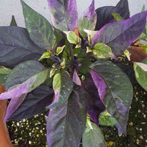 種から鑑賞用トウガラシ パープルフラッシュ🌿 綺麗な斑が入ってきました(*´艸`*)💜