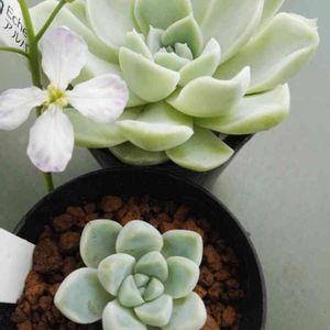 アルビカンス 8月の上旬頃にHCよりお迎えしました😊 見た目に一目惚れし、無知なまま即決‼️ チマチマ感が可愛くてセダム系かなと思っていたら、エケベリア属⁉️ 画像はほとんどがドーンと1個の子ばかり😳 …この子は一体どういう状態なんだろう💧 赤ちゃんの群生⁉️ ダ〇ソーじゃあるまいし、札は間違えて無いよね〜🙄 葉挿しするとしたら… 小さい葉っぱを1枚ずつもぎ取って? それとも先端を✂️で? 時期は? 詳しい方、教えて下さいませ💦