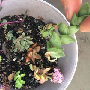 おはようございます 切り苗のセダムの鉢を動かしたら、 緑の長い子が抜けちゃって💧 でもしっかり根が出てて安心 ٩(❁´ω`❁)۶ 🌸ピンクの花も咲いてた🌸 セダム達は強いんだね