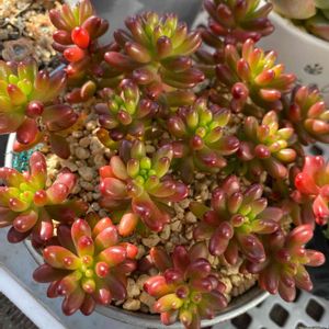 マジックゴールド💓 右下の子は本当は多肉先輩にお嫁に出した子😅 前に投稿しましたが、 元々右下にいた子はバラバラ事件になっちゃってその場所が空いてしまったんです😅 そのバラバラ事件の写メを先輩に送ったら、 空いた場所にまた植えてあげて、とお嫁に出した子を送り返してくれました😅 そこまでお気遣いしていただいて、 なんて愛情深い方なんでしょうか😢 作り物みたいな色が綺麗です🤗💕