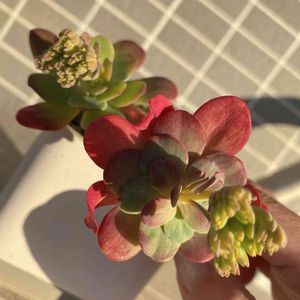 爪がピンクで色白なお姫様みたいな多肉さんも大好きだけど、 和風っぽい千代紙の柄のお花みたいな多肉さんにも心惹かれます🥰 今欲しい和風っぽい子、2つあり😅 大和姫はまだ寒くない頃にメルカリからお迎えして、 最初は濃い緑だったけど、 寒さで色が薄くなりエッジの色が際立ってきてまたこれも綺麗だな😍
