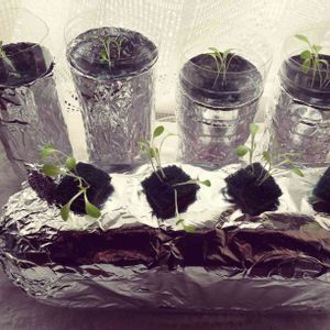 水耕栽培 容器に移し替えようと思って引き抜いたら根っこの長さにまだ不安があり、抜いてしまったからどうしよう…ということで急遽こんな形に… 窓辺に置いて根っこ伸びるの待ちたいけど、水がお湯になってダメになっちゃうかな!?