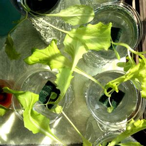 リーフレタスの水耕栽培 とうとう容器に移し替え! これで綺麗に育ってくれたらいいなあ〜