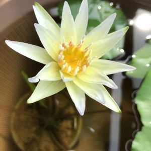 熱帯睡蓮 ムーンビーム。 1日目のお花。 直射日光下だと本当に光っているみたいに見えます。