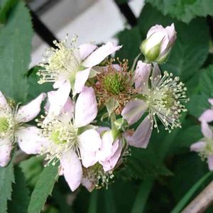 ブラックベリー✨お花満開の写真撮りたかったのに( ´゚д゚`)アチャー防風警報でてた、来年のお楽しみにしよ😊2輪だけでも可愛いよ。(⌒‐⌒)